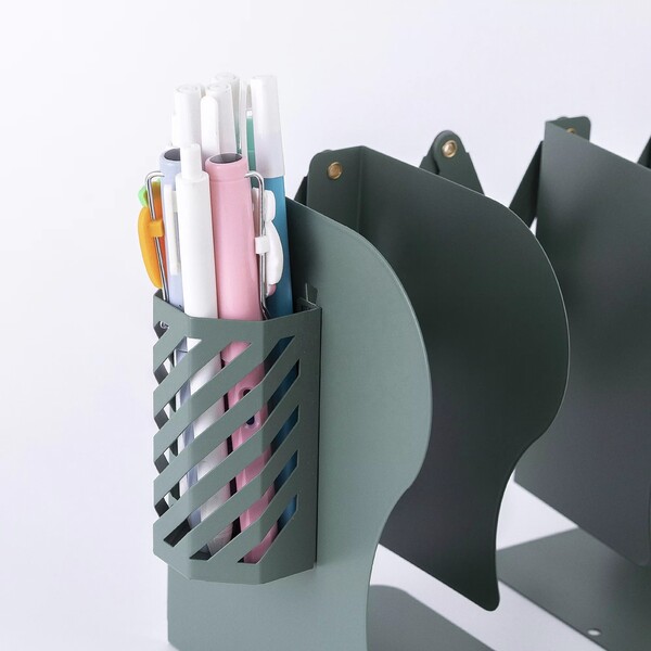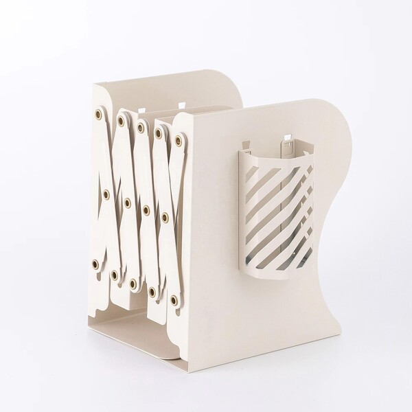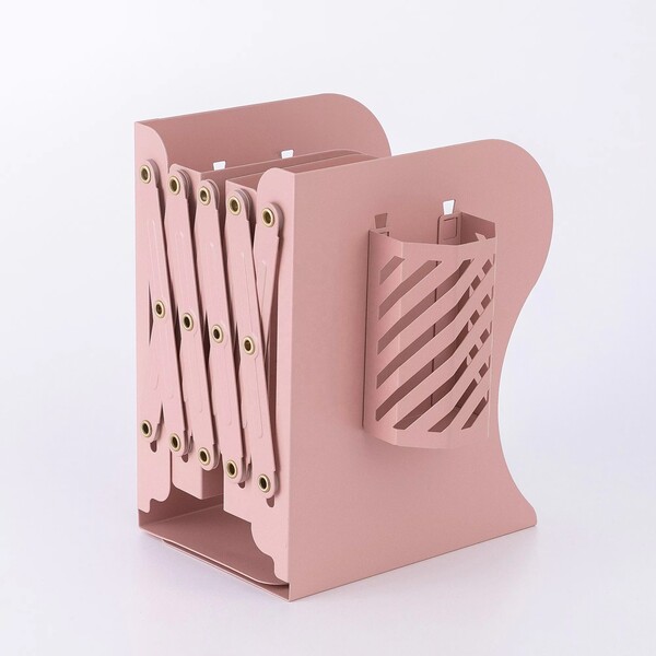 Feature: Our bookshelf is very stable and books won't fall off. There is a removable pen holder on the right side. The bookshelf has a zoom function and does not take up much space when placed.