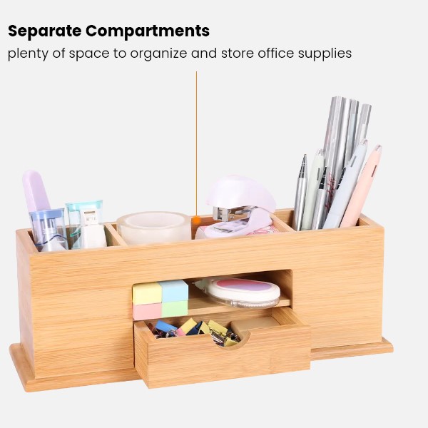 Features: Made of high quality bamboo, it is both durable and stylish for any office and home office decor, providing users with the perfect desktop storage solution to keep desks organized while keeping office supplies and items within reach.