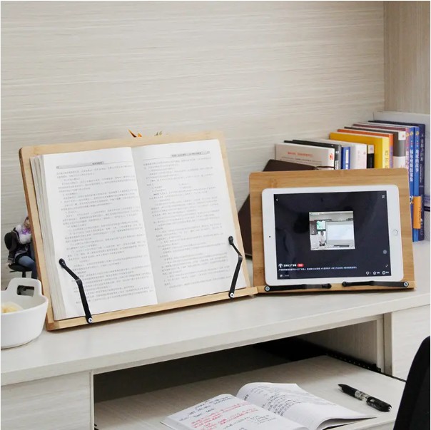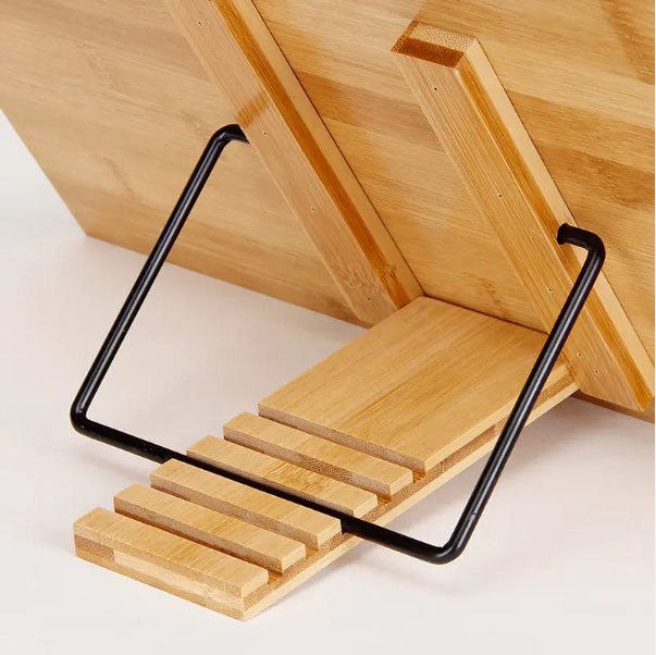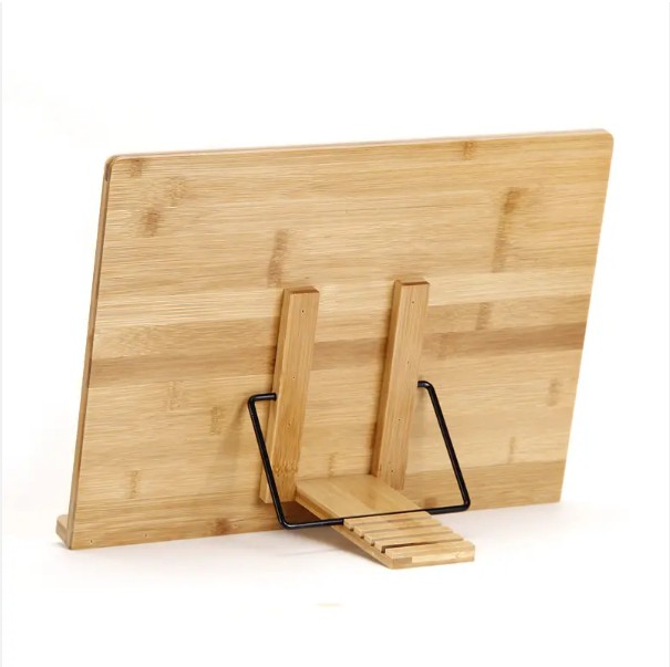 Feature: Panel five kinds of angle adjustable to meet a variety of use needs, with elastic clamping strip, pure bamboo plate, stable and durable structure without deformation.