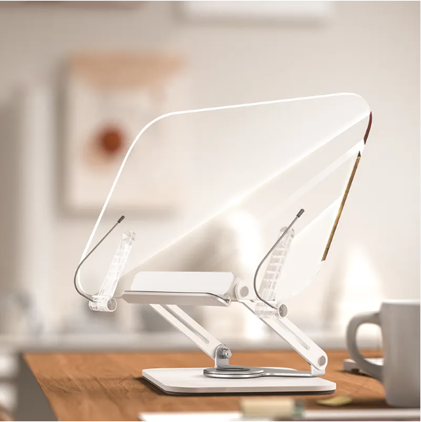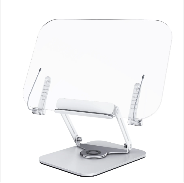 Feature: Adjustable bookshelf features multiple angles and heights to elevate books to your eye level and promote proper posture. With a 360° swivel base, the bookshelf is ideal for sharing ideas or presenting case studies.