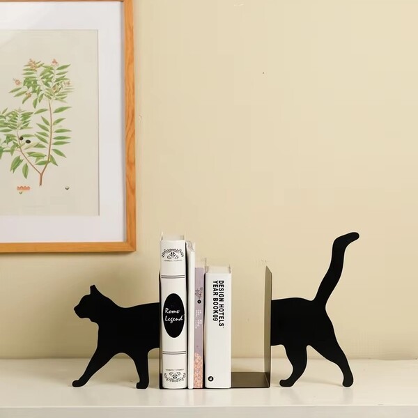 2 Pairs Metal Black Decorative Cat Bookshelf